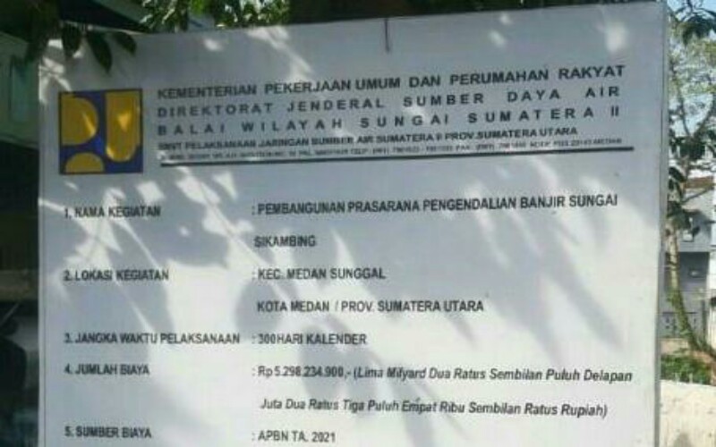 Proyek Pembangunan Prasarana Pengendalian Banjir Sungai Sikambing itu merupakan proyek dari Kementerian PUPR Ditjen Sumber Daya Air Balai Wilayah Sungai (BWS) Sumatera II, SNVT Pelaksanaan Jaringan Sumber Air Sumatera II Provinsi Sumatera Utara.
