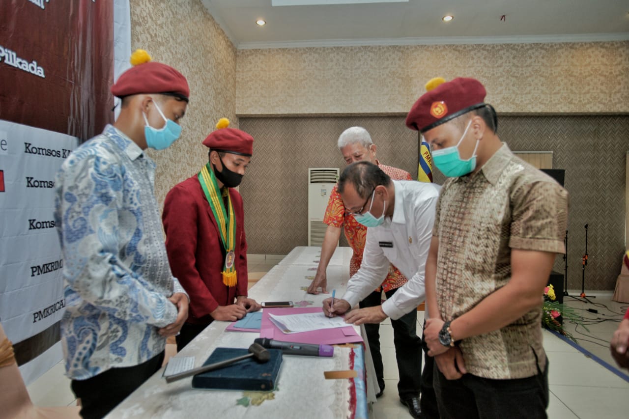 tobapos.co–Pelaksana Tugas (Plt) Wali Kota Medan Ir H Akhyar Nasution MSi menghadiri acara Pelantikan Mandataris Rapat Umum Anggota Cabang (RUAC) dan Dewan Pimpinan Cabang (DPC) Perhimpunan Mahasiswa Kristen Republik Indonesia (PMKRI) Cabang Medan St Bonaventura Periode 2020-2021 di Catholic Center Hall Jalan Mataram No 21 Kelurahan Petisah Hulu Kecamatan Medan Baru, Rabu (26/8) sore.