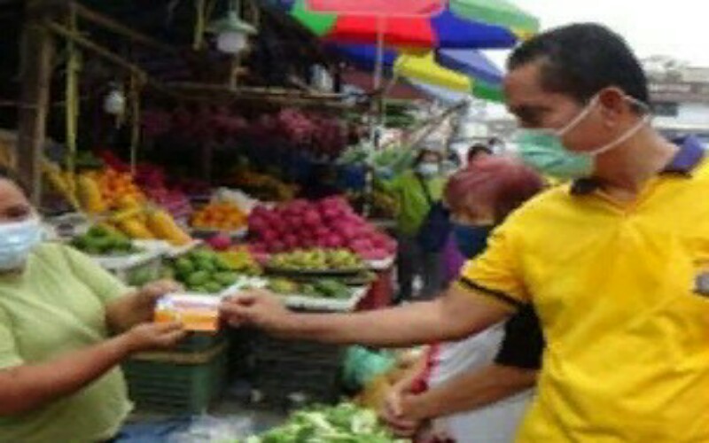 tobapos.co – Sebagai langkah antisipasi memutus rantai penyebaran Covid-19, Bhayangkari Ranting Polsek Delitua melakukan pembagian masker gratis dan vitamin c kepada masyarakat yang ada di Pasar tradisional Delitua, Sabtu (12/6/2021). .