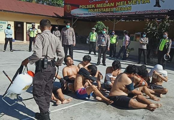 tobapos.co – Demi rasa kemanusiaan dan antisipasi penyebaran wabah Virus Corona (Covid-19), Polsek Helvetia menjemur para tahanan supaya terkena sinar matahari, dilakukan di halaman Mako Polsek, Selasa (5/4/2020).