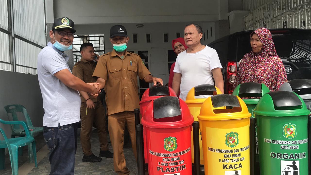Anggota Dewan dari Dapil 1 ini serahkan 5 tong sampah kepada Kepling 8 Sei Agul Burhanuddin bersama perwakilan masyarakat. Penyerahan tong sampah dari Dinas Kebersihan dan Pertamanan ini menyahuti keluhan warga di bidang kebersihan.