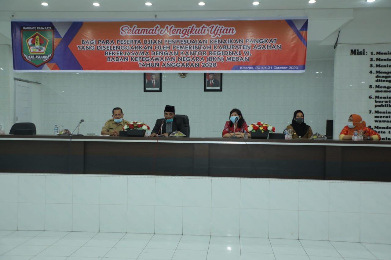 Pada kegiatan Ujian Penyesuaian Kenaikan Pangkat tersebut Pemerintah Kabupaten Asahan bekerjasama dengan Kantor Regional VI BKN Medan.