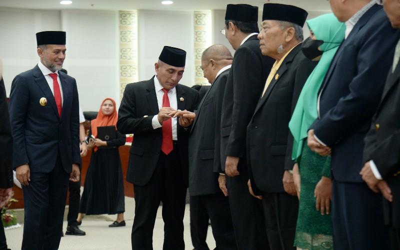 “Tantangan pastilah ada, namun sepanjang kita mampu bekerja sama, bergandengan tangan, meninggalkan ego sektoral, kita pasti bisa mampu melewatinya. Oleh karena itu, segenap pimpinan dan anggota DPRD Sumatera Utara menyampaikan penghargaan kepada Gubernur dan Wakil Gubernur yang telah mengikhlaskan untuk membangun provinsi ini. Juga kepada para anggota dewan yang selama ini telah menjalankan fungsinya,” jelas Baskami.