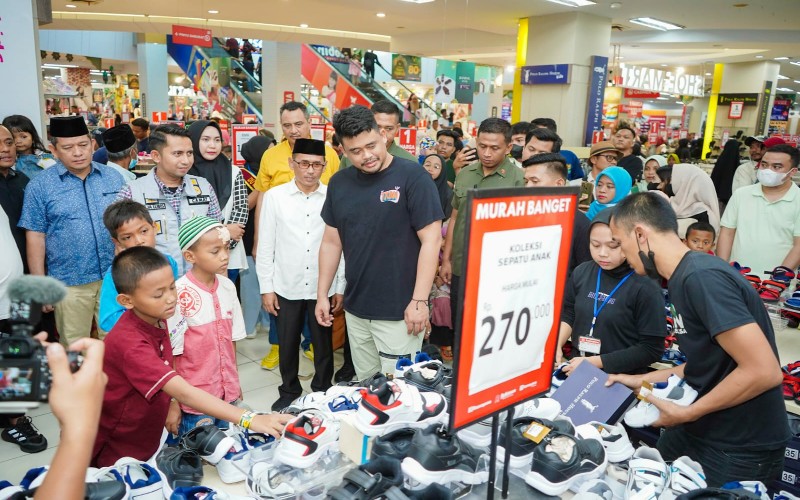 tobapos.co – Wajah seratus anak yatim dhuafa Kota Medan terlihat sangat ceria. Senyum sumringah tanda penuh kebahagian terus terpancar dari wajah polos mereka. Tangan kecil mereka tampak menggenggam erat voucher belanja senilai Rp.500.000 dan voucher bermain. Wajah mereka semakin ceria lagi ketika Wali Kota Medan Bobby Nasution datang dan memberikan tambahan Rp 200.000 untuk setiap anak.