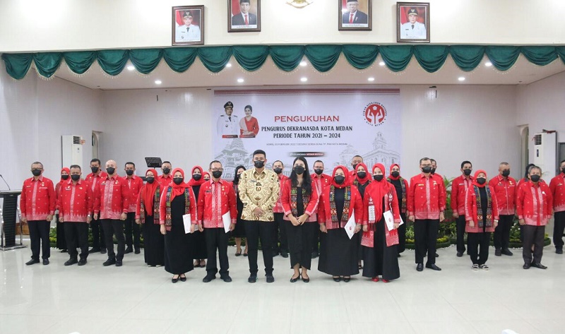 “Program Pemko Medan salah satunya membantu para ibu yang suaminya memiliki pendapatan yang rendah untuk dapat dibantu dengan cara mengedukasi para ibu, karena itu Dekranasda harus segera berkolaborasi dengan OPD terkait agar dapat memberikan pelatihan UMKM kepada para ibu sehingga dapat membantu perekonomian keluarganya.”kata Bobby Nasution sembari mengucapkan selamat kepada seluruh pengurus yang dikukuhkan.