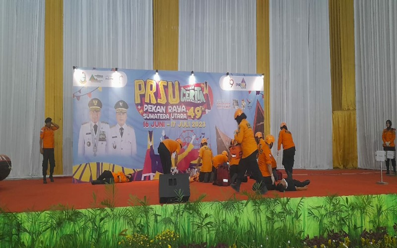 Namun mesti terlihat santai, BPBD Sumut juga mendapat perhatian banyak pengunjung saat berlangsung simulasi tanggap bencana yang digelar di arena PRSU.