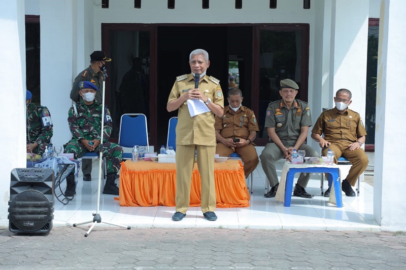 Ini disampaikan oleh Bupati Asahan H. Surya, BSc saat memimpin apel di Halaman Kantor Satpol PP Kabupaten Asahan, Senin (31/01/2022) yang dihadiri juga oleh Asisten Pemerintahan dan Kesejahteraan Rakyat, Kadis Kominfo Kabupaten Asahan, Kasatpol PP Kabupaten Asahan, Subdenpom 1/1-4 Kisaran (Pelatih Pelatih Baris Berbaris Satpol PP Kabupaten Asahan) dan Personil Satpol PP Kabupaten Asahan.