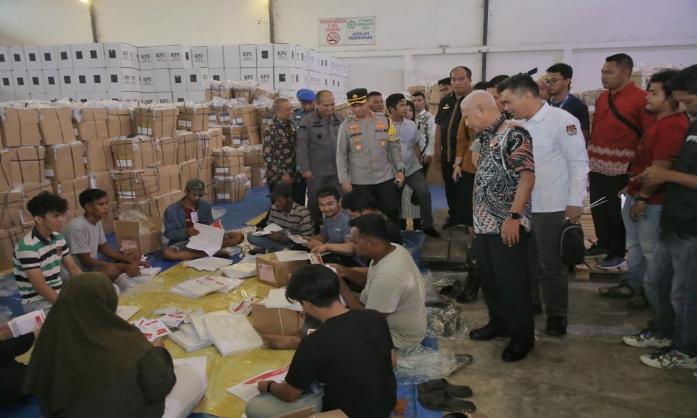 tobapos.co – Bupati Asahan H. Surya, BSc bersama dengan Forkopimda Kabupaten Asahan melaksanakan peninjauan di Gudang Logistik Pemili 2024 KPU Kabupaten Asahan di Jalan Sisingamagaraja Kelurahan Sendang Sari Kecamatan Kota Kisaran Barat, Kamis (11/01/2024). Turut hadir dalam kegiatan tersebut Wakil Bupati Asahan, Dandim 0208/Asahan, Kapolres Asahan, Kajari Asahan, Ketua PN Kisaran, mewakili Danlanal TBA, Asisten Pemerintahan dan Kesejahteraan Rakyat, OPD, Ketua KPU Kabupaten Asahan dan Ketua Bawaslu Kabupaten Asahan.