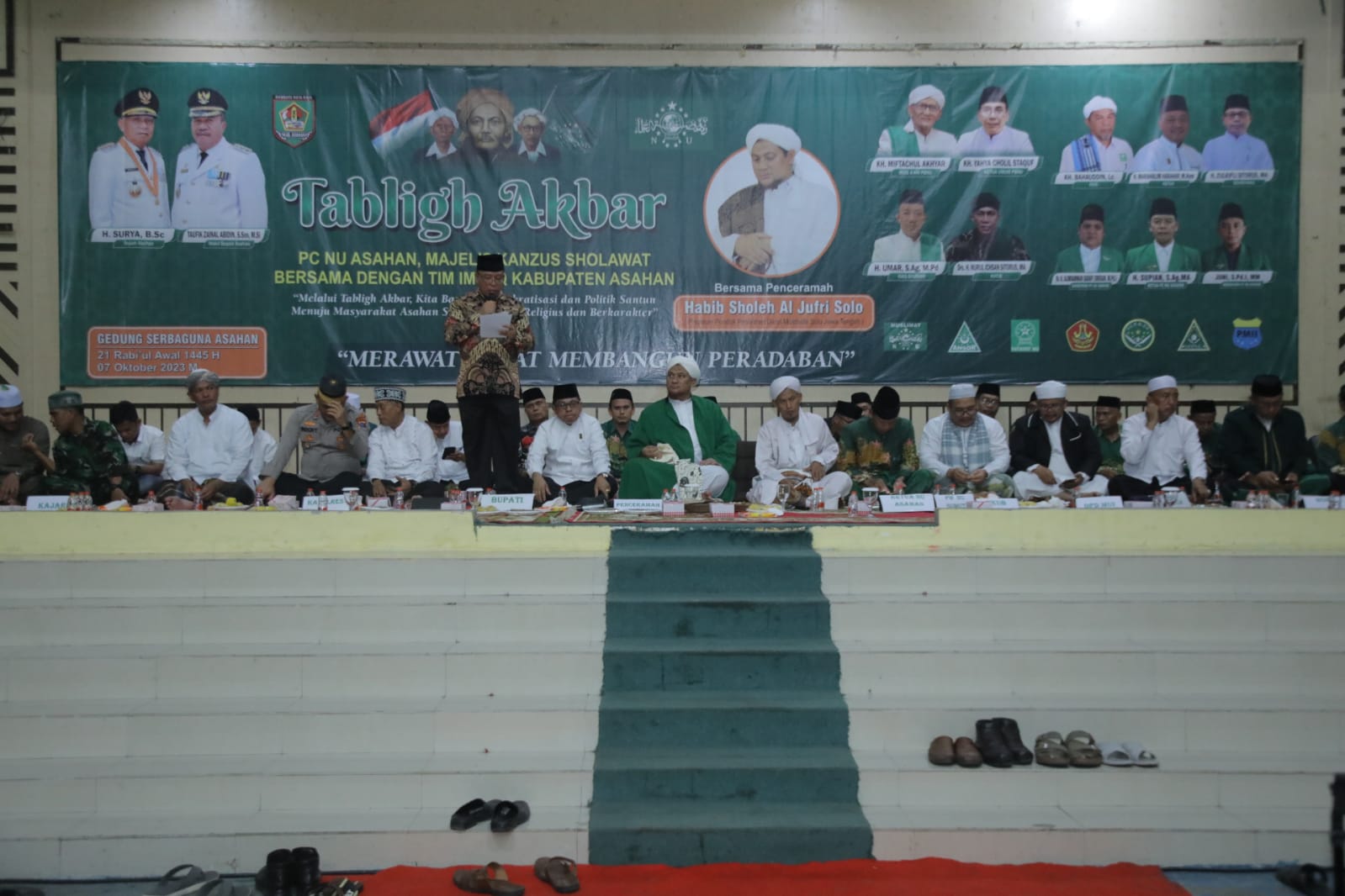 tobapos.co – Bupati Asahan yang di wakili oleh Sekretaris Daerah Kabupaten Asahan Drs. John Hardi Nasution, M.Si di dampingi oleh Asisten, Mewakili Kepala Dinas Kominfo menghadiri Tabligh Akbar PC NU Kabupaten Asahan, Sabtu malam (07/10/2023). Bertempat di Gedung Serbaguna (GOR) Rambate Rata Raya Kabupaten Asahan
