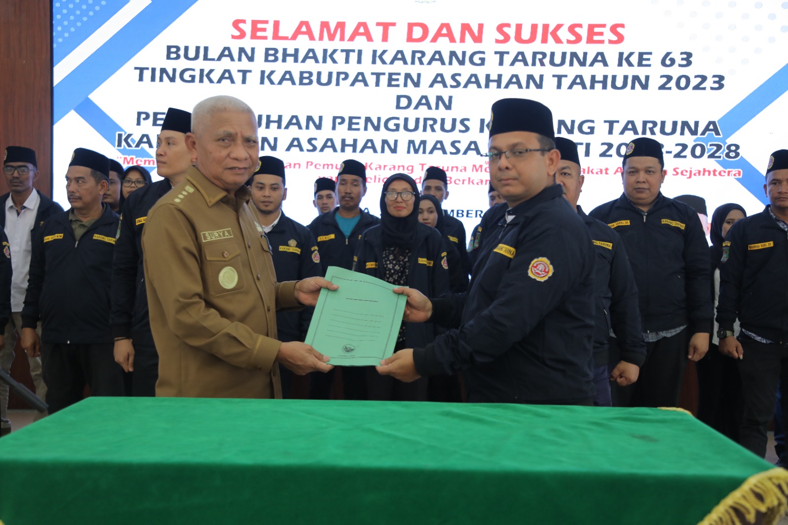tobapos.co – Berdasarkan Surat Keputusan Bupati Asahan Nomor 100.3.3.2-63-5-4.6 Tahun 2023, Bupati Asahan H. Surya, BSc mengkukuhkan Pengurus Karang Taruna Kabupaten Asahan Masa Bhakti 2023-2028 di Pendopo Rumah Dinas Bupati Asahan, Selasa (26/09/2023).