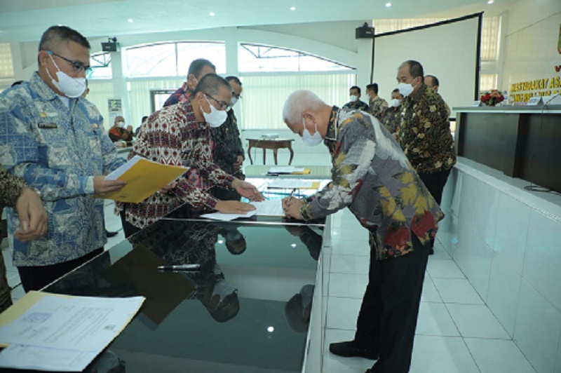 tobapos.co – Bupati Asahan H. Surya, BSc melakukan penandatanganan secara kolektif Perjanjian Kinerja (PK) OPD dan Kecamatan se-Kabupaten Asahan Tahun 2022 sekaligus membuka sosialisasi penyusunan Laporan Keterangan Pertanggungjawaban (LKPJ) Bupati Asahan Tahun Anggaran 2021 di Aula Melati Kantor Bupati Asahan, Kamis (20/01/2022).