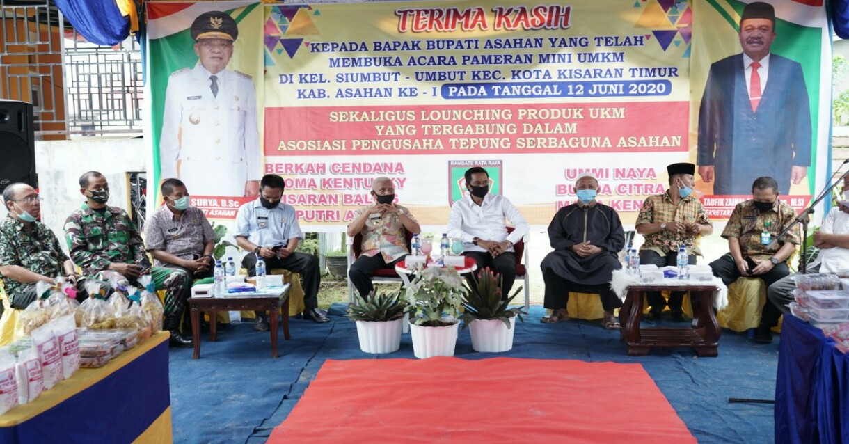 tobapos.co – Bupati Asahan Buka Secara Resmi Pameran Mini UMKM Sekaligus Lauching Produk UMKM yang Tergabung Dalam Asosiasi Pengusaha Tepung Serbaguna Asahan Jumat (12/06/2020). Sekira pukul 10.00 wib.