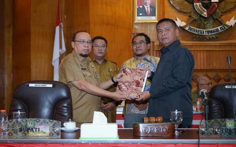tobapos.co – Mewakili Bupati Asahan, Sekretaris Daerah (Sekda) Kabupaten Asahan Drs. John Hardi Nasution, M. Si menyampaikan Rancangan Peraturan Daerah (Ranperda) Tentang Pertanggungjawaban Pelaksanaan APBD Kabaupaten Asahan Tahun Anggaran 2022 pada Rapat Paripurna DPRD Kabupaten di Aula Rambate Rata Raya Sekretariat DPRD Kabupaten Asahan yang dipimpin langsung oleh Ketua DPRD Kabupaten Asahan H. Baharuddin Harahap, SH, MH, Senin (12/06/2023). Turut hadir Wakil Ketua DPRD Kabupaten Asahan, Anggota DPRD Kabupaten Asahan, OPD dan tamu undangan lainnya.