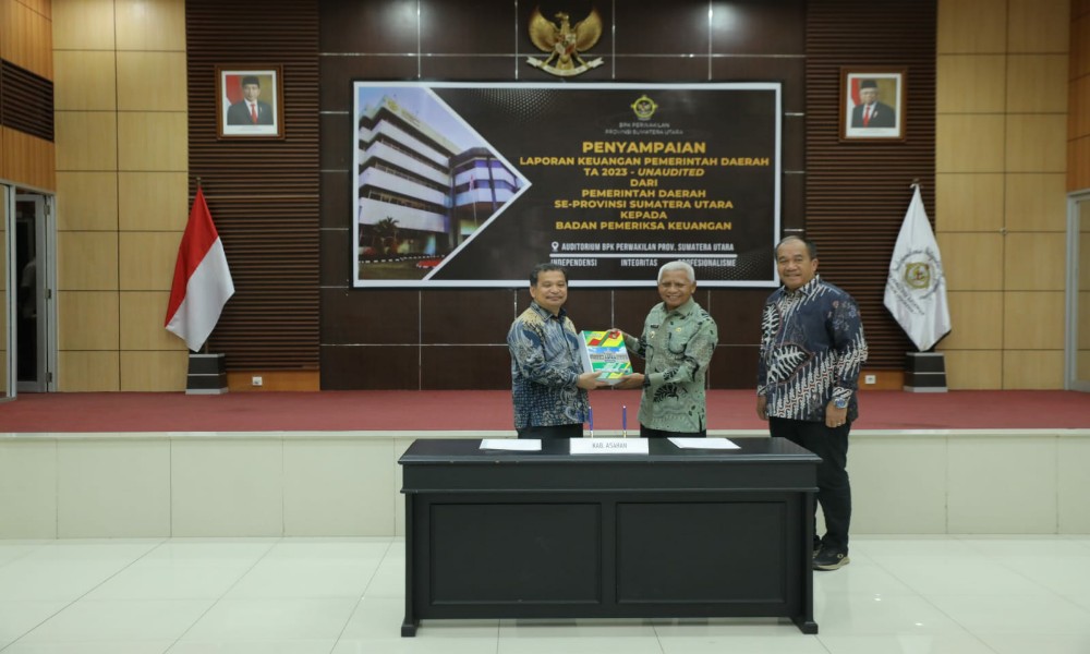 Laporan keuangan unaudited tahun 2023 Pemerintah Kabupaten Asahan tersebut diserahkan langsung oleh Bupati Asahan H. Surya, BSc dan diterima langsung Kepala perwakilan BPK Sumatera Utara Eydu Oktain Panjaitan SE MM Ak CA CSFA.