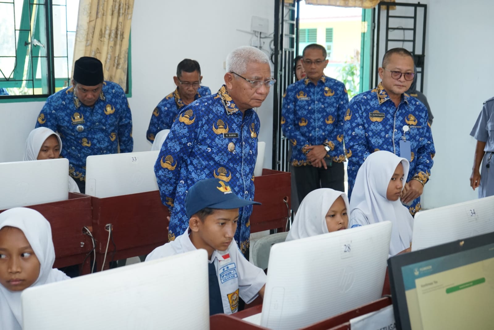 tobapos.co – Bupati Asahan H. Surya, BSc meninjau pelaksanaan Asesmen Nasional Berbasis Komputer (ANBK) Tahun 2023 Tingkat SMP di UPTD SMP Negeri 7 Kisaran, Senin (18/09/2023). Turut mendampingi Kadis Pendidikan Kabupaten Asahan, Kadis Kominfo Kabupaten Asahan, Camat Kota Kisaran Timur dan Kepala UPTD SMP Negeri 7 Kisaran dan Pendidik UPTD SMP Negeri 7 Kisaran.