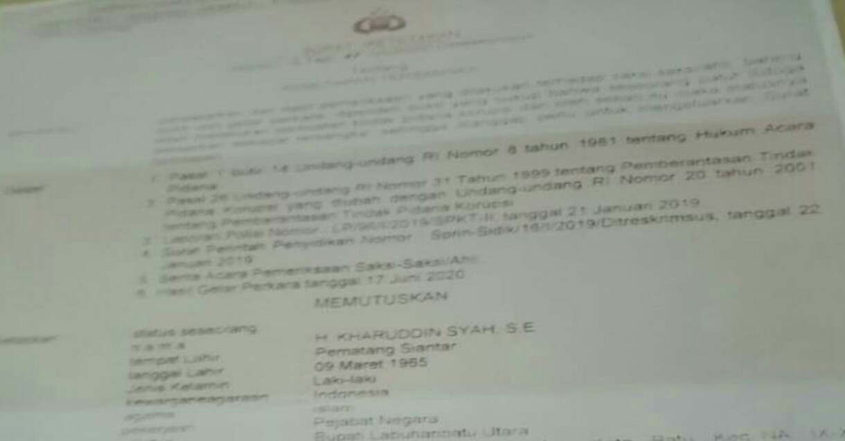 Namun, meski foto mirip salinan surat penetapan tersangka ini telah beredar luas di masyarakat, hingga saat ini Poldasu belum mengumumkan secara resmi tentang status hukum Kharuddin Syah dalam kasus yang telah menjerat tiga orang pejabat Pemkab Labura.