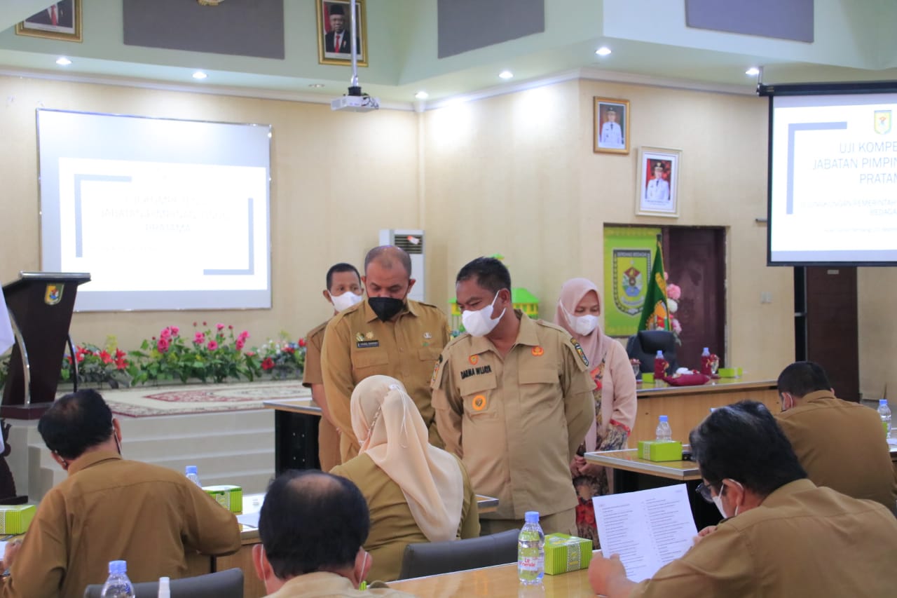 tobapos.co – Bupati Serdang Bedagai H. Darma Wijaya meninjau langsung pelaksanaan uji kompetensi Jabatan Pimpinan Tinggi (JPT) Pratama di lingkungan Pemkab Sergai, yang digelar di Aula Sultan Serdang, Kompleks Kantor Bupati Sergai, Sei Rampah, Senin (20/9/2021).
