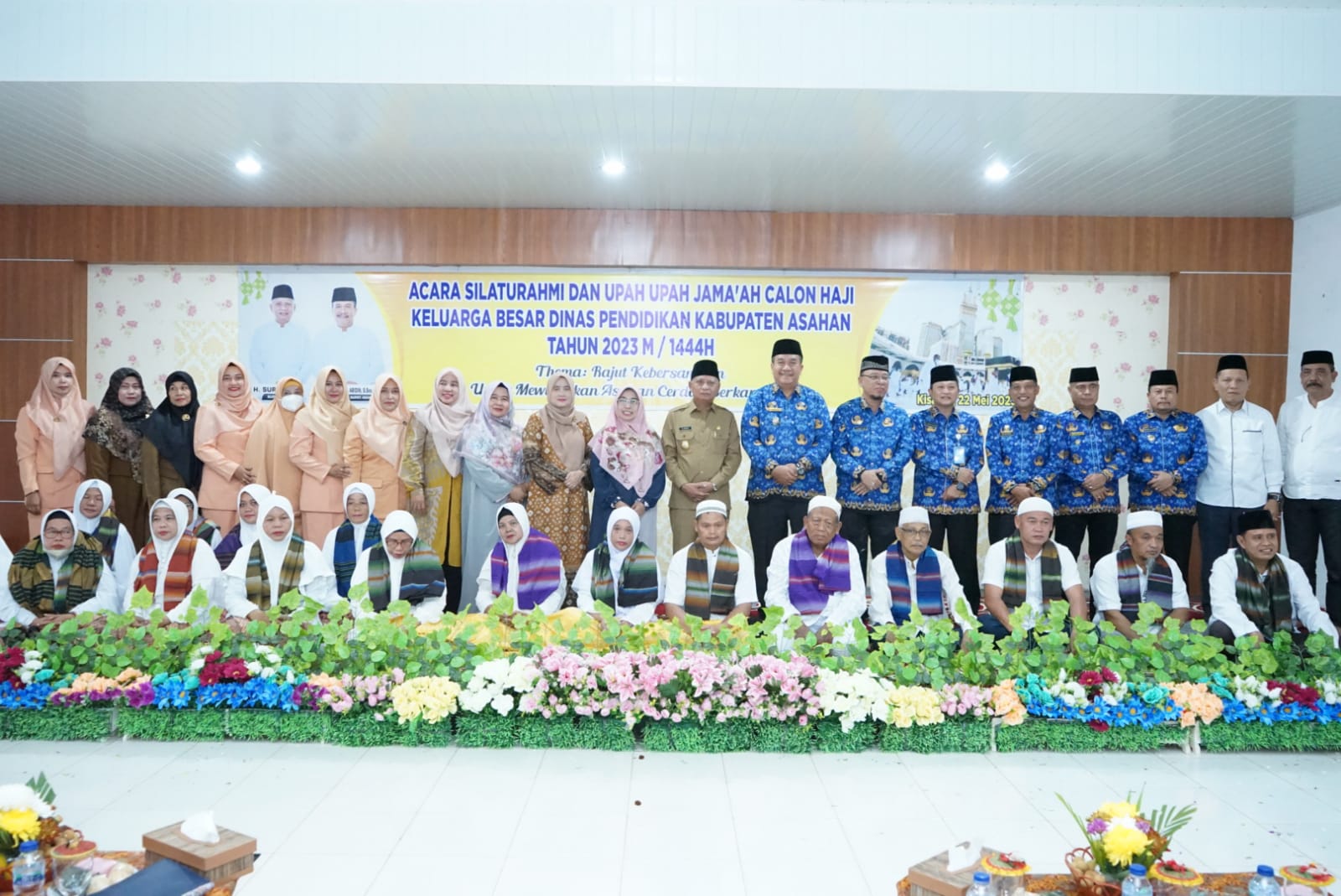 tobapos.co – Bupati Asahan H. Surya BSc bersama Wakil Bupati Asahan Taufik Zainal Abidin S. Sos, M. Si upah – upah dan tepung tawari 22 Jemaah Calon Haji dari Keluarga Besar Dinas Pendidikan Kabupaten Asahan yang dilaksanakan di Aula Dinas Pendidikan, Senin (22/05/2023). Turut hadir Sekretaris Daerah Kabupaten Asahan, Asisten, Kadis Pendidikan, Kadis Kominfo, Ketua TP-PKK, Wakil Ketua TP-PKK, Ketua Dharma Wanita, Ketua Dewan Pendidikan, Tokoh Agama, dan tamu undangan lainnya.
