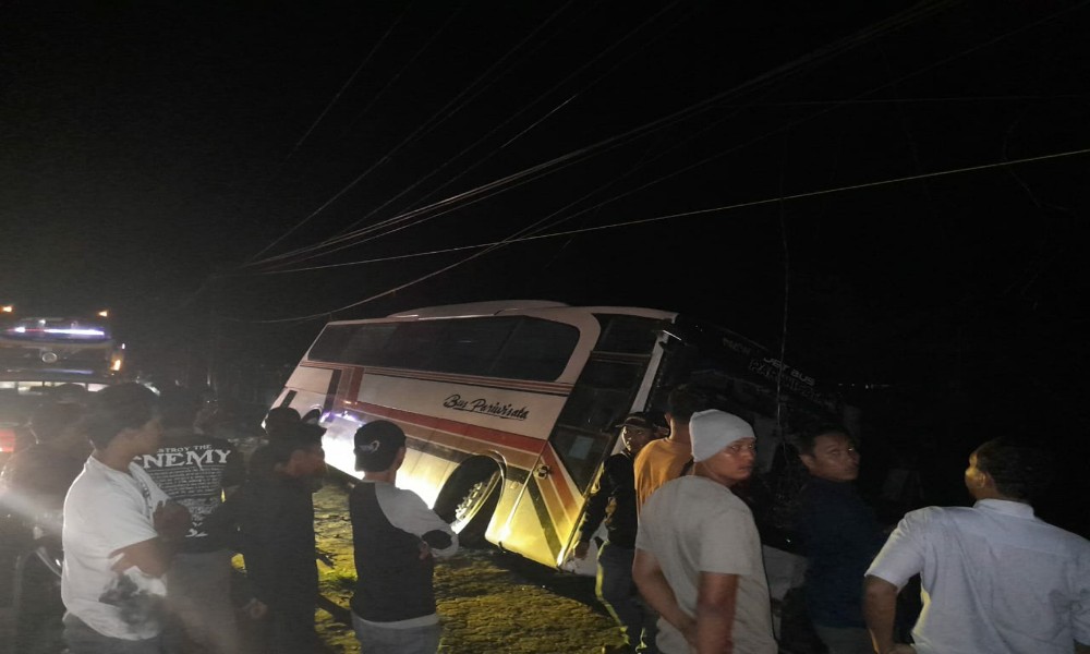 “Saat ini kami sedang mengevakuasi mobil bus tersebut dengan dua mobil derek,” tutup Kanit.