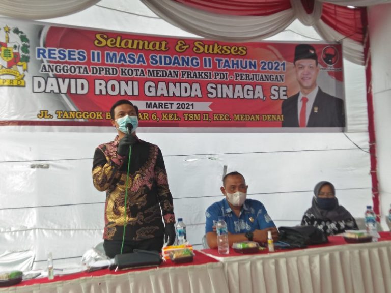 Untuk menampung aspirasi para konsetuennya itulah, David Roni Ganda Sinaga, SE melaksanakan Reses II Masa Sidang II Tahun 2021 sesi kedua, di Jl. Tangguk Bongkar VI Kelurahan TSM II Kecamatan Medan Denai, Sabtu (20/3/2021).