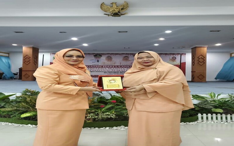 tobapos.co – Ketua Dharma Wanita Persatuan Kabupaten Asahan Ny. Hj. Derlina John Hardi Nasution Terima Penghargaan Terbaik Pertama Kategori Keaktipan dan Pelaporan Elektronik Pelaksanaan Program Kerja (E-Reporting) Dharma Wanita Persatuan (DWP) se Sumatera Utara bertempat di Aula Dinas Perhubungan Provinsi Sumatera Utara, Sabtu (18/12/2021).