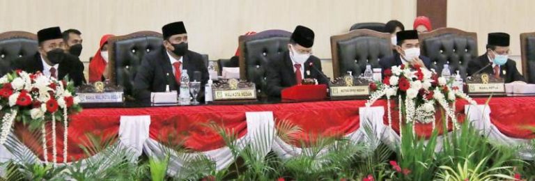 tobapos.co–Rapat paripurna DPRD Medan dengan agenda mendengarkan pidato Presiden Republik Indonesia dalam rangka penyampaian Rancangan Undang-undang (RUU) APBN tahun 2022 beserta nota keuangan dan dokumen pendukung lainya, di Gedung DPRD Medan, Senin (16/8).