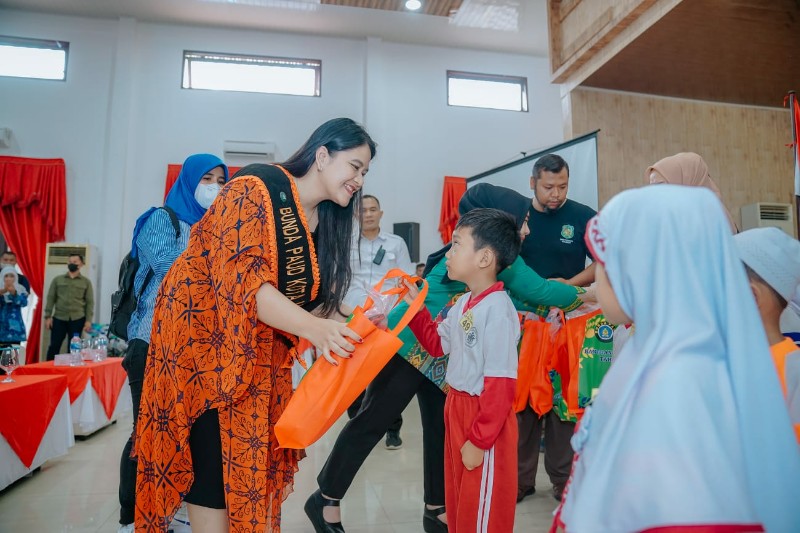 tobapos.co – Bunda Pendidikan Anak Usia Dini (PAUD) Kota Medan Ny Kahiyang Ayu M Bobby Afif Nasution memberikan bantuan peralatan sekolah kepada 200 orang anak PAUD di Gedung TP PKK Kota Medan Jalan Rotan Medan, Selasa (20/12). Diharapkan, bantuan yang diberikan dapat membantu dalam membentuk anak berkualitas.