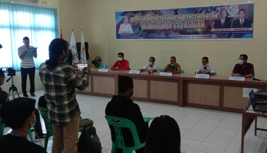 tobapos.co – Federasi Triathlon Indonesia (FTI) Kabupaten Asahan menggelar acara workshop dalam rangka pengenalan dan pengembangan olahraga Tritlon di Kabupaten Asahan. Acara digelar di aula KONI Asahan. Senin (26/4)21). Kegiatan tersebut yang pertama kali di Kabupaten Asahan.