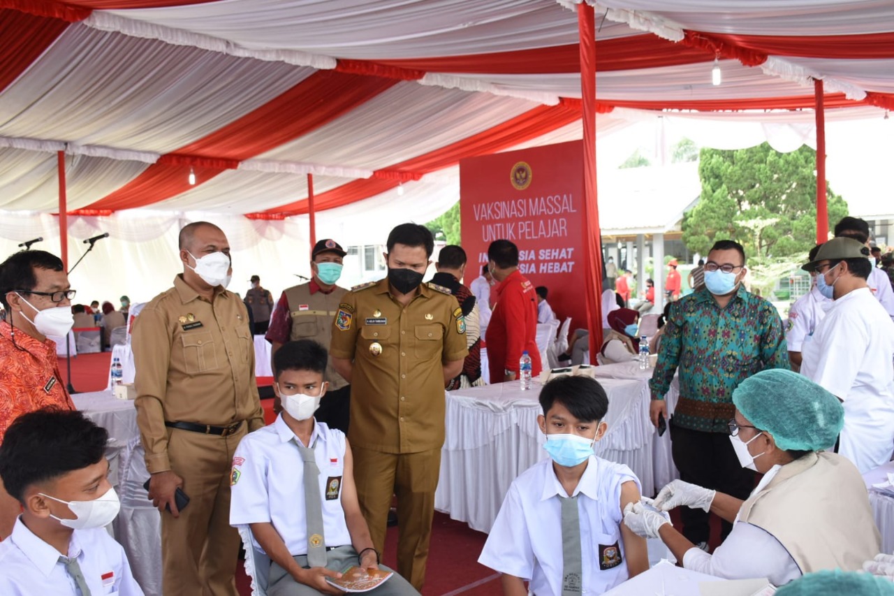 “Alhamdullilah, pada hari ini kembali melaksanakan vaksinasi dengan sasaran utama para pelajar. Seperti kita ketahui bersama, saat ini kerinduaan anak-anak kita para siswa, serta kerinduan para Bapak dan Ibu Guru untuk kembali ke sekolah sudah terjawab dengan berjalan kembalinya rutinitas belajar-mengajar di sekolah.