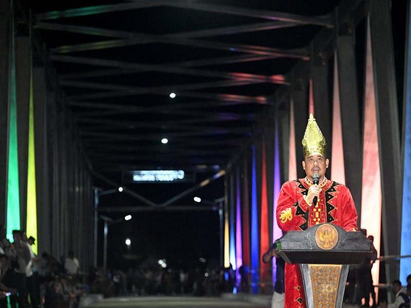 “Pas ini mulai dibangun banyak yang nakut-nakuti, habis masa jabatan tak akan siap, anggaran tak cukup-cukup, tapi di awal 2026 ini kita selesaikan dan sudah bisa digunakan secara umum,” kata Bobby Nasution saat peresmian Jembatan Noyo di Kecamatan Mandrehe, Kabupaten Nias Barat, Rabu 11 Februari 2026 malam.