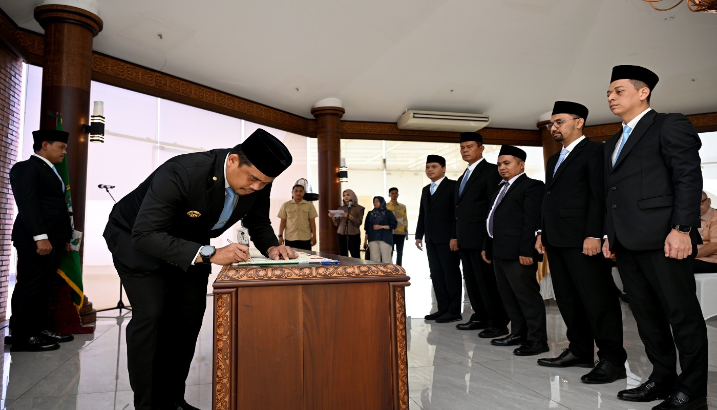 tobapos.co – Gubernur Sumatera Utara (Sumut) Muhammad Bobby Afif Nasution mengangkat dan menetapkan direksi dan dewan komisaris dua Badan Usaha Milik Daerah (BUMD), yaitu PT Pembangunan Prasarana Sumatera Utara (PPSU) dan PT Dirga Surya. Pelantikan tersebut berlangsung di Anjungan Lantai 9, Kantor Gubernur Sumut, Jalan Pangeran Diponegoro Nomor 30 Medan, Kamis (24/7/2025).