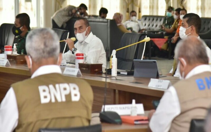 Turut hadir Plt Kepala BPBD Sumut Mahfullah Pratama Daulay dan Plt Asisten Pemerintahan dan Kesejahteraan Rakyat Afifi Lubis, tim dari Satgas Penanganan Covid-19. Selain itu juga hadir Forkopimda, OPD Pemprov Sumut dan Pemko/Pemda. (MM)
