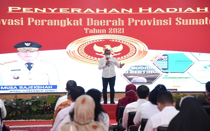 Hal itu disampaikannya saat Penyerahan Hadiah Lomba Inovasi Perangkat Daerah 2021 di Aula Tengku Rizal Nurdin, Rumah Dinas Gubernur, Jalan Jenderal Sudirman, Medan, Rabu (27/10). Gubernur meminta setiap pihak termasuk setiap perangkat daerahnya meninggalkan kegiatan yang monoton.
