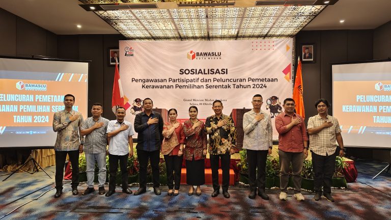 Sosialisasi Pengawasan Partisipatif dan Peluncuran Pemetaan Kerawanan Pemilihan Serentak Tahun 2024, untuk mengetahui indeks kerawanan pelaksanaan piljada serentak. Dimana diketahui posisi kerawanan pilkada di kota Medan adalah “SEDANG”.
