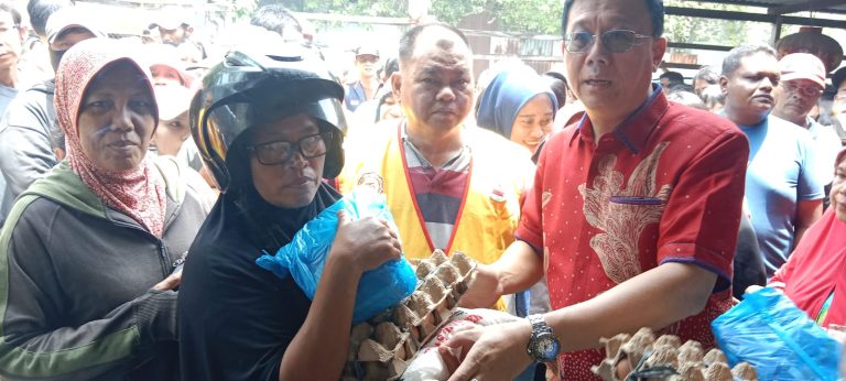 tobapos co-Ketua DPRD Kota Medan Hasyim bersama Pimpinan Vihara Kara Manggala, Ationg bersama pengurusan Yayasan Cakra Luhur Indonesia membagikan ratusan paket sembako kepada warga pra sejahtera yang berada di kawasan Medan Sunggal.