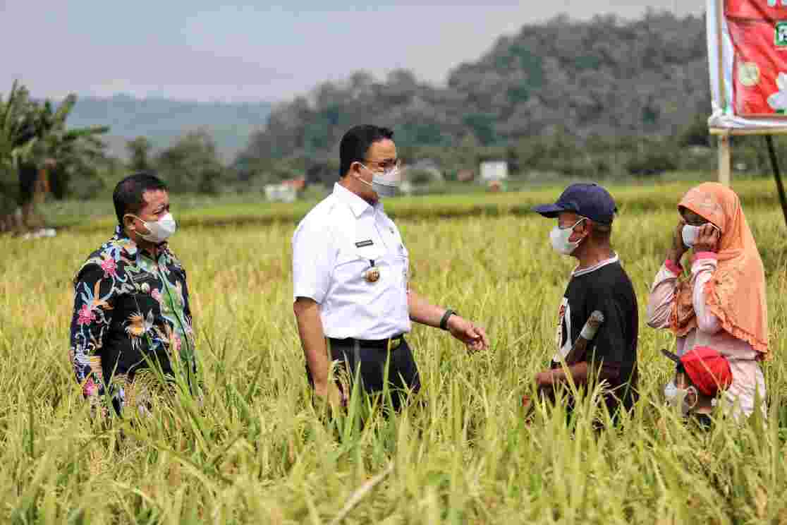 tobapos.co – Gubernur Provinsi DKI Jakarta, Anies Baswedan, beserta Bupati Sumedang, Dony Ahmad Munir, Dirut PT. Tjipinang Food Station, Pamrihadi Wiraryo, dan Dirut Perumda Pasar Jaya, Arief Nasrudin, melakukan panen raya bersama, di area persawahan Desa Mekarwangi, Kecamatan Tomo, Kabupaten Sumedang, Jawa Barat, Jumat (11/06/2021).
