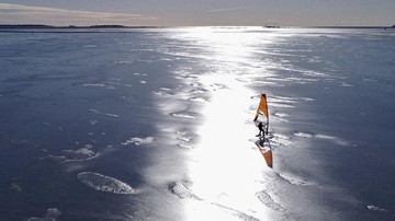 Untuk sekelompok penduduk Finlandia, jawabannya adalah melengkapi papan berlayar dengan sepatu seluncur es yang berpisau tajam, yang membantu mencapai kecepatan hingga 100 kilometer per jam.