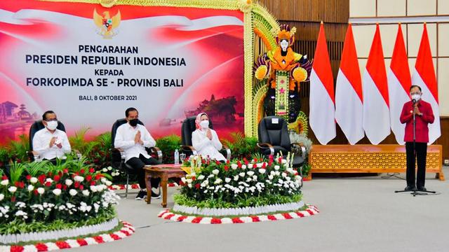 “Disiplin protokol kesehatan itu sangat menekan angka penyebaran Covid-19,” kata Jokowi saat memberikan arahan dalam Forum Koordinasi Pimpinan Daerah (Forkopimda) se-Provinsi Bali di Kantor Gubernur Bali, Kota Denpasar, Jumat (8/10/2021).