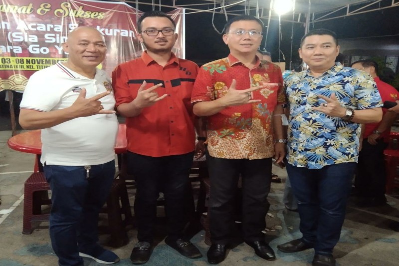 tobapos.co – Kader Partai Demokrasi Indonesia Perjuangan (PDIP) Hendra SH MH (foto-tengah baju merah) hadiri syukuran (Sia Sin) di Vihara Go Yakong Kelurahan Titi Papan, Kecamatan Medan Deli, Medan, Rabu (9/11/2022).