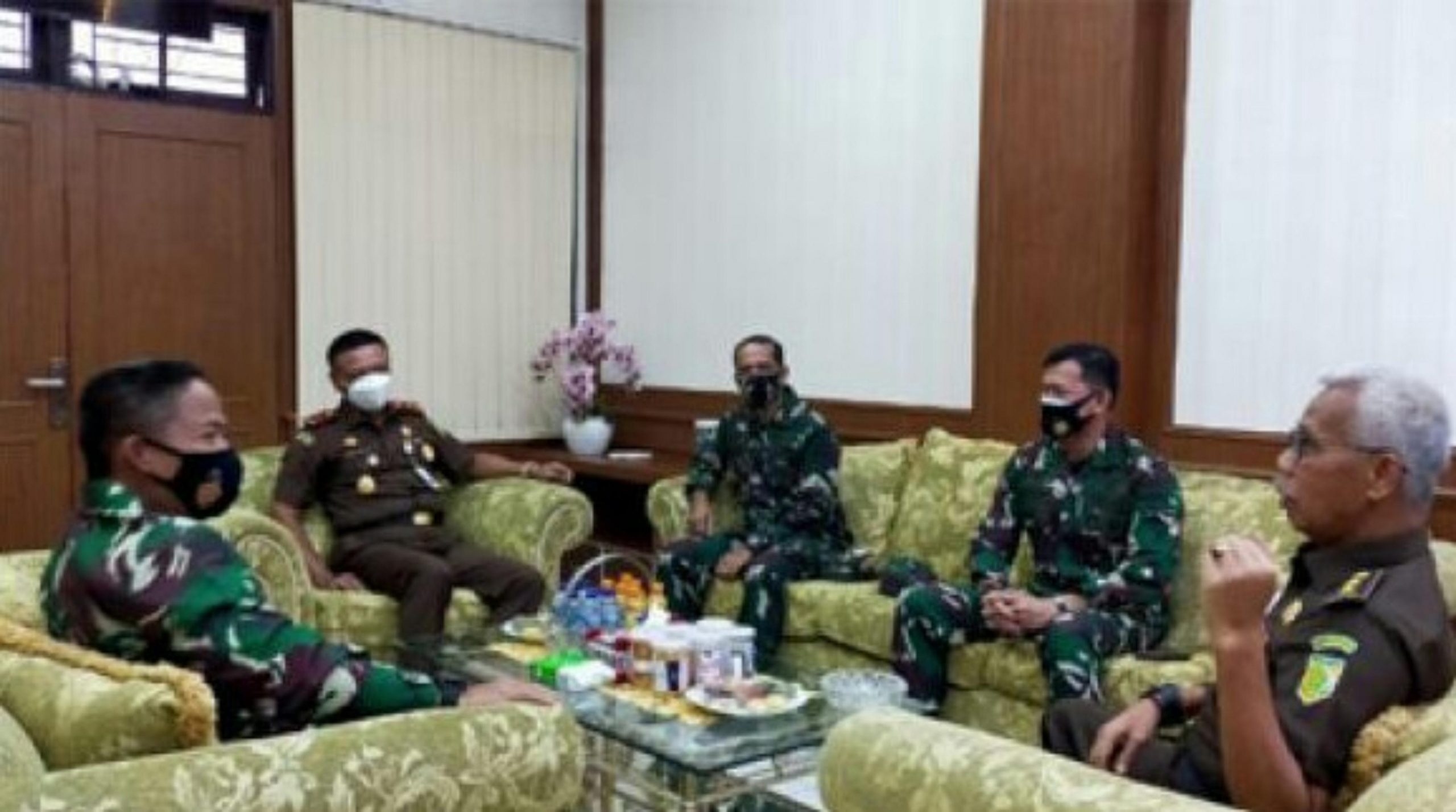 Kunjungan Pangdam I/BB Mayjen TNI Hassanudin SIP, MM ke Kantor Kejaksaan Tinggi Sumatera Utara (Kejatisu) tersebut tampak didampingi Asop, Kapendam,Waka Aster Kasmin, Kakundam I/BB.