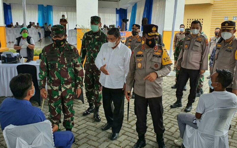 tobapos.co, Tanjung Morawa ~ Kapolda Sumut Irjen Pol RZ Panca Putra Simanjuntak bersama Pangdam I/BB Mayjen TNI Hasanuddin, melakukan pengecekan vaksinasi terhadap buruh, yang bertempat di P3UD, Tanjungmorawa, Kabupaten Deliserdang, Jumat (30/4/2021).