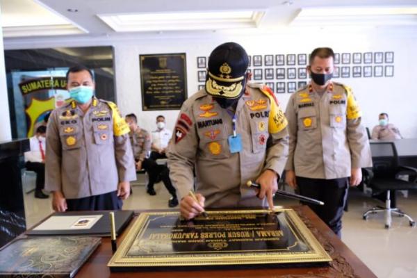 tobapos.co – Kapolda Sumut Irjen Pol Martuani Sormin didampingi Wakapolda Sumut Brigjen Mardiaz Kusin Dhwihananto melaksanakan Penandatangan Peresmian Asrama Rumah Susun Polres Tanjung Balai yang dilaksanakan di lobby Adhi Pradana Mapolda Sumut. Senin (4/5/2020)