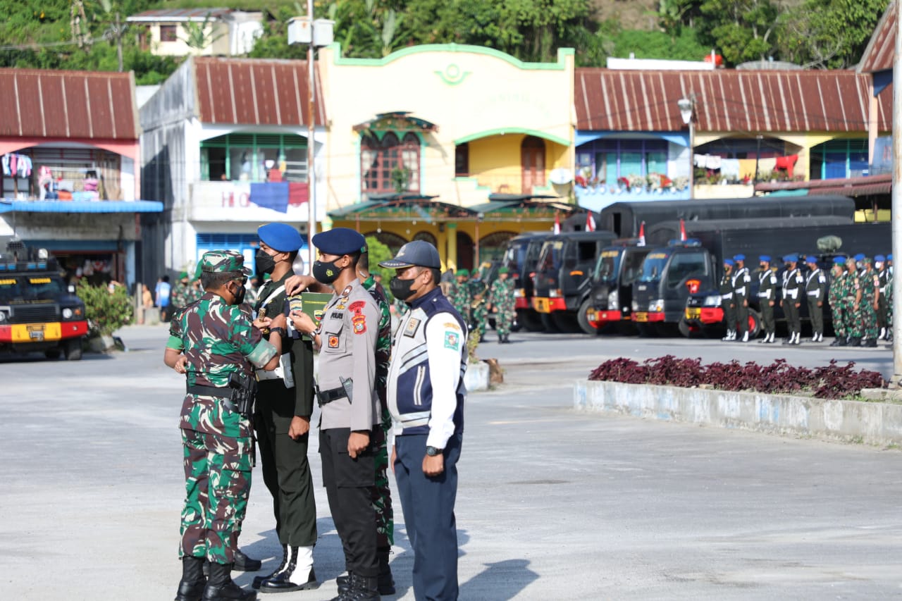 Sebanyak 1.784 personel gabungan dari TNI dan Polri mengikuti apel pengamanan kunjungan kerja Wakil Presiden bertempat di Terminal Bus Parapat, Kabupaten Simalungun.