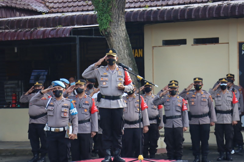 Kapolres mengatakan bahwa upacara yang kita laksanakan ini memang dilaksanakan pada setiap bulannya namun hal ini janganlah dianggap sebagai rutinitas biasa saja, tapi selayaknya kita harus lebih memahami bahwa upacara ini merupakan wujud kesadaran kita sebagai satu kesatuan aparatur negara yang selalu hadir ditengah-tengah masyarakat dalam mengayomi dan memberikan pelayanan terbaik kepada masyarakat bangsa dan negara. Terkait dengan pelaksanaan tugas kita tentu banyak hal yang perlu kita evaluasi dan kita tingkatkan, agar pelaksanaan tugas kita kedepan menjadi lebih baik dan maksimal.