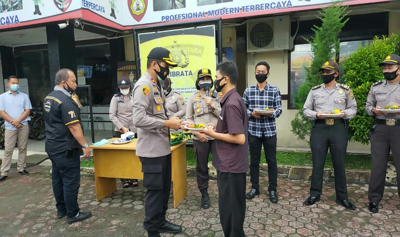 Usai mendengarkan arahan, kegiatan dilanjutkan dengan pemotongan nasi tumpeng oleh Kapolsek Medan Baru dan diberikan kepada personel yang menerima kenaikan pangkat setingkat dan dilanjutkan dengan sarapan pagi bersama.