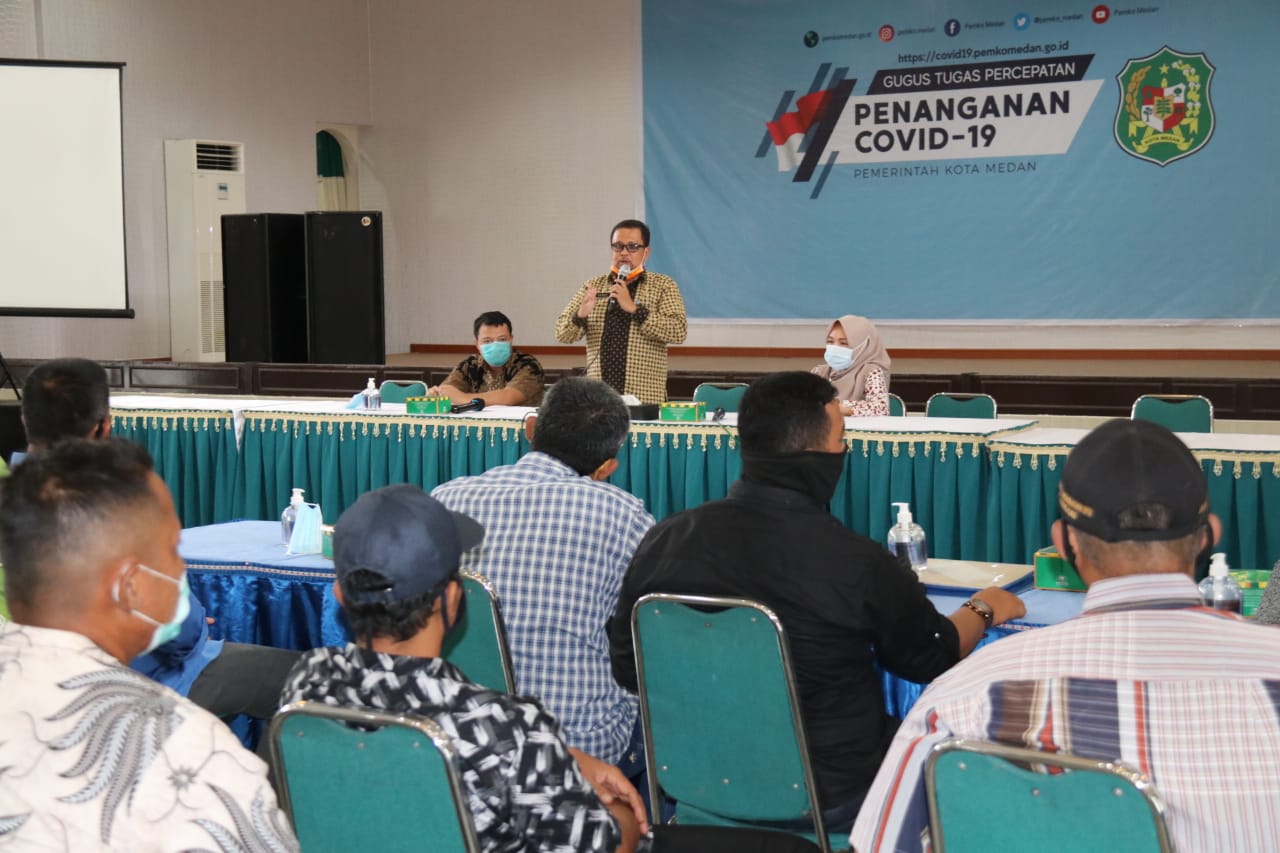 Demikian disampaikan Sekretaris Badan Penanggulangan Bencana Daerah (BPBD) Kota Medan Nurli saat memberikan sosialisasi Perwal No 27/2020 kepada Kepling se Kecamatan Medan Sunggal bertempat di Posko Gugus Tugas Percepatan Penanganan Covid-19 Jalan Rotan Medan Petisah, Kamis (12/11) siang. Tujuan kegiatan ini semakin mendorong para Kepling untuk terus mengingatkan masyarakat agar mematuhi protokol kesehatan.