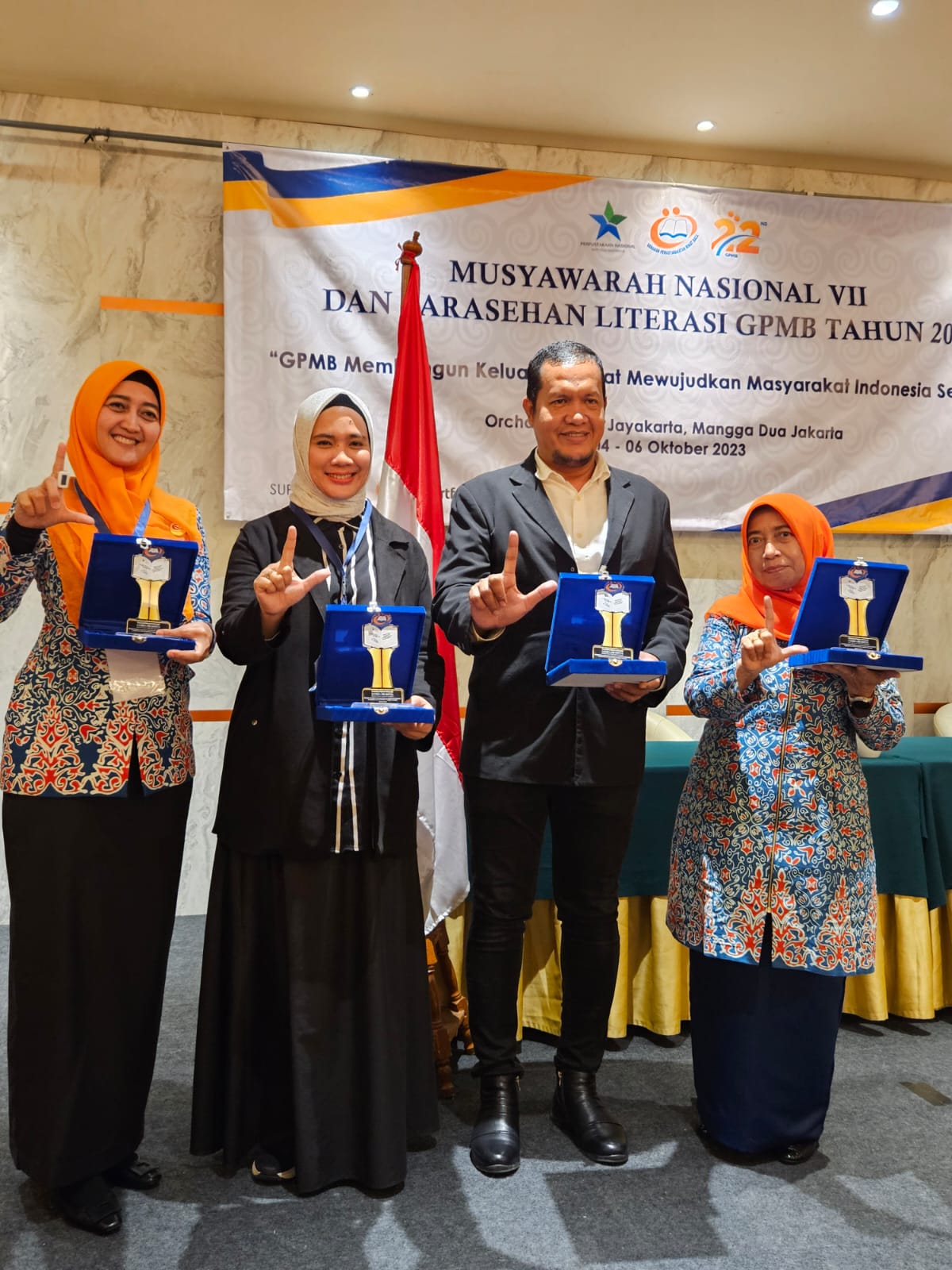 Penghargaan berupa Piagam dan Trophy tersebut diterima langsung oleh Ketua GPMB Kabupaten Asahan Hj. Titiek Sugiharti Surya dari Kepala Perpustakaan Nasional Drs Muhammad Syarif Bando pada acara Musyawarah Nasional VII dan Sarasehan Literasi Gerakan Pemasyarakatan Minat Baca (GPMB) bertempat di Hotel Orchardz Jayakarta, Jakarta, Rabu (04/10/2023).