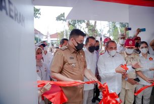 tobapos.co – Ketua TP PKK Provinsi Sumatera Utara (Provsu) Ny. Nawal Edy Rahmayadi memberikan bantuan kepada masyarakat yang terkena dampak banjir di wilayah Kabupaten Asahan, Sabtu (19/12/2020), yang berlangsung di halaman kantor Camat Kecamatan Simpang Empat.