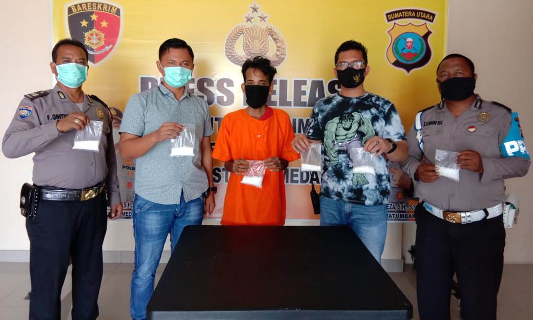 tobapos.co -Seorang penumpang bus, Zulkarnain (32), warga Desa Alupuno Kabupaten Bireuen Aceh ditangkap petugas Reskrim Polsek Patumbak di Jalan Sisimangaraja stasiun bus ALS diduga atas kepemilikan narkotika jenis sabu-sabu.