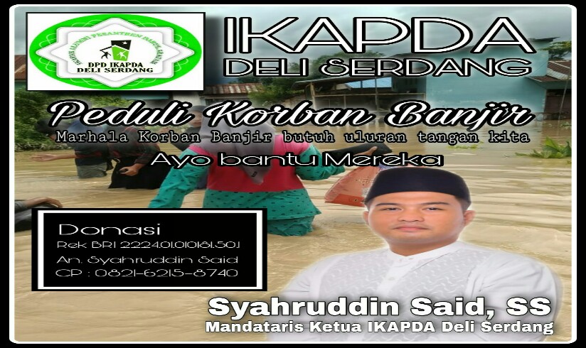 Bagi yang dari luar Kabupaten Deli Serdang yang juga ingin turut memberikan sumbangsih untuk para marhala (Alumni-red) korban banjir, bisa menyalurkan bantuannya melalui posko utama di Jalan Sultan Serdang Gg Banten Desa Bangun Sari Baru, Tanjung Morawa.